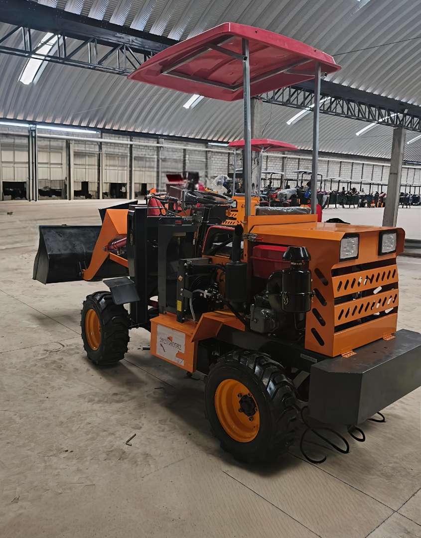 El cargador frontal de 600 kg 4×4 Centauro garantiza un agarre imparable en cualquier terreno. Su pala de 0.4 m³ te permite mover material con rapidez y su altura máxima de 2130 mm, podrás cargar fácilmente en camiones y volquetes.