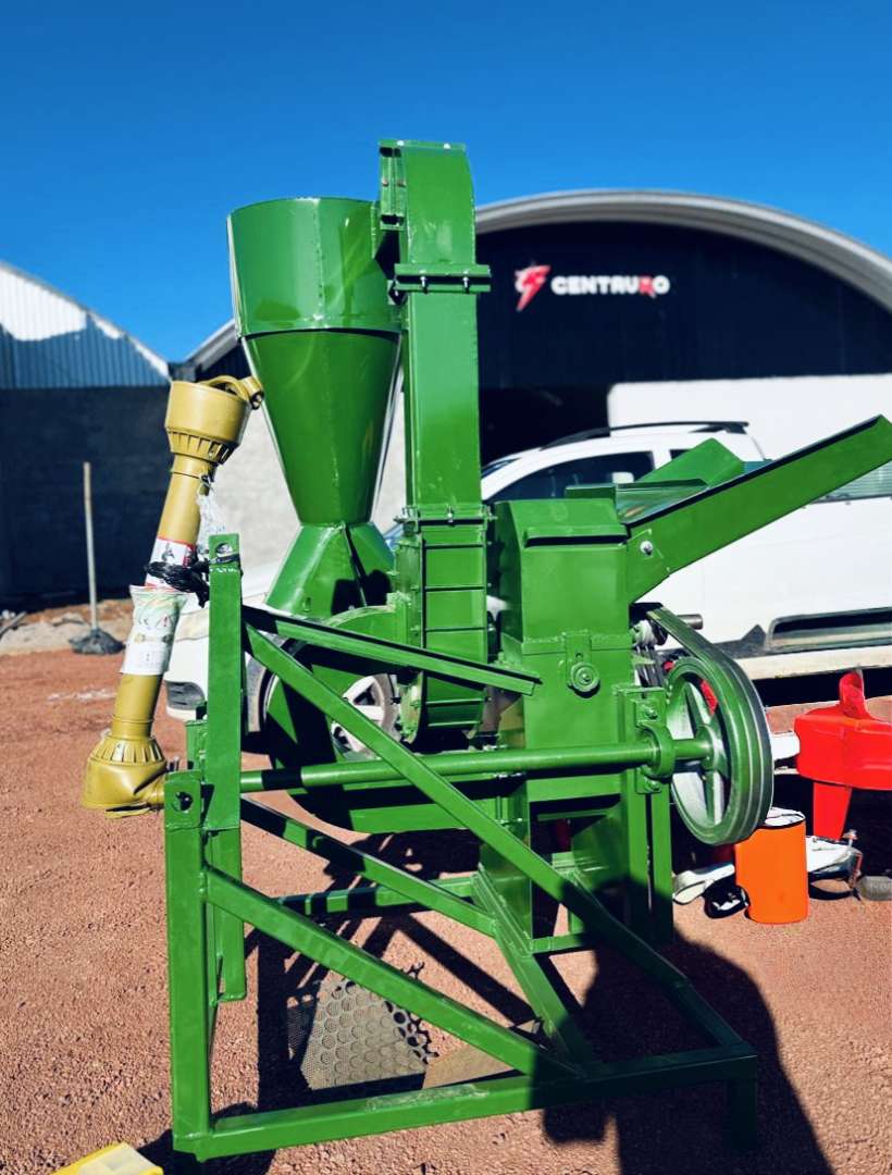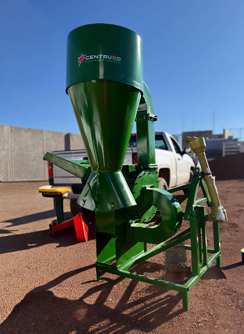 El molino para verde y seco No. 20 Centauro con toma de fuerza y enganche de 3 puntos es la herramienta perfecta para procesar forraje, rastrojo y grano directamente con tu tractor. Ofrece un alto rendimiento capaz de moler hasta 1250 kg/h de forraje verde, 2500 kg/h de grano y 1300 kg/h de material seco.