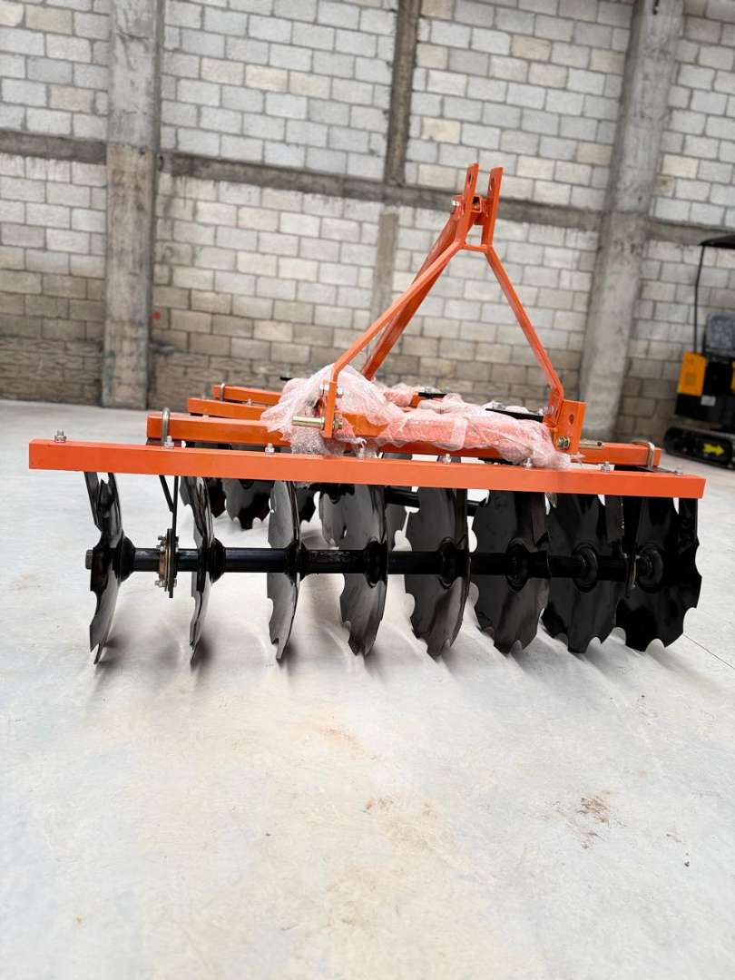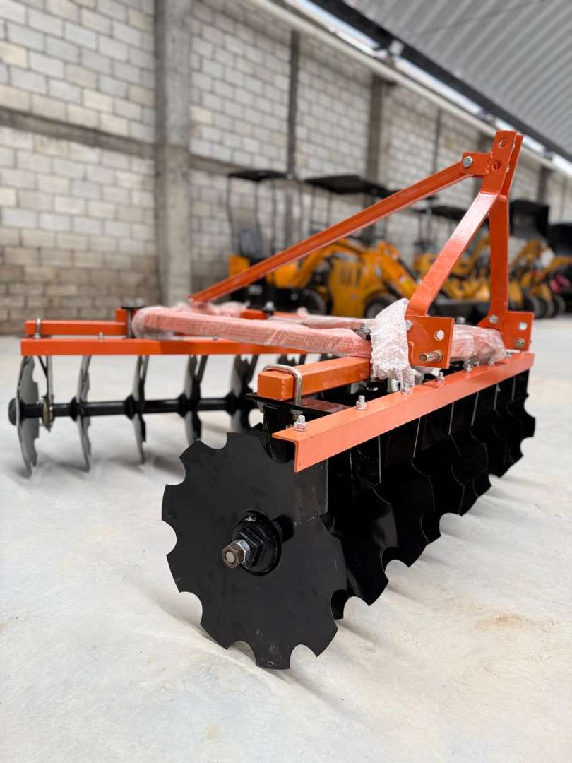 Ángulo ajustable de los discos, que permite regular la intensidad del corte y la profundidad. Acoplamiento al tractor a través del enganche de 3 puntos. Tiene un peso de 240kg, anchura de trabajo de 1700 mm, con una profundidad de trabajo de 10 Pulgadas .